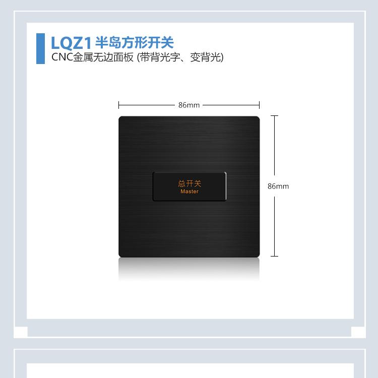 V8-Z6(V8-Z6Y)铝拉丝CNC无边型半岛开关面板_LQZ1系列方形开关